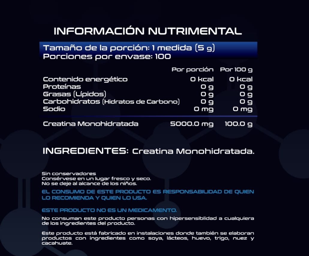Incremento de la fuerza muscular: Los estudios sugieren que la creatina puede ayudar a aumentar la fuerza y la potencia muscular, lo que puede ser beneficioso para atletas y personas que buscan mejorar su rendimiento en entrenamientos de fuerza. Mejora en la recuperación muscular: Se ha observado que la creatina monohidratada puede reducir el daño muscular y acelerar la recuperación después del ejercicio intenso, lo que permite entrenar con mayor frecuencia y con menos dolor muscular. Aumento del volumen celular muscular: La creatina puede aumentar la cantidad de agua dentro de las células musculares, lo que lleva a un mayor volumen muscular aparente, lo que puede ser deseable para algunos atletas y culturistas. Beneficios cognitivos potenciales: Algunos estudios sugieren que la creatina podría tener efectos positivos en la función cerebral y la salud mental, aunque se necesita más investigación para confirmar estos beneficios. Sabor natural Tu aliado para el éxito deportivo, potencia tu entrenamiento.